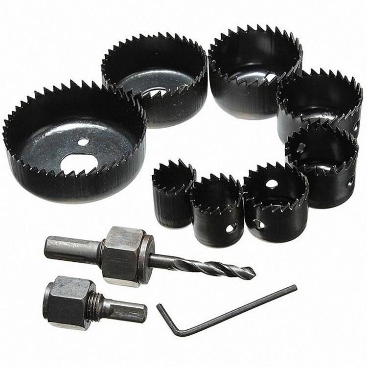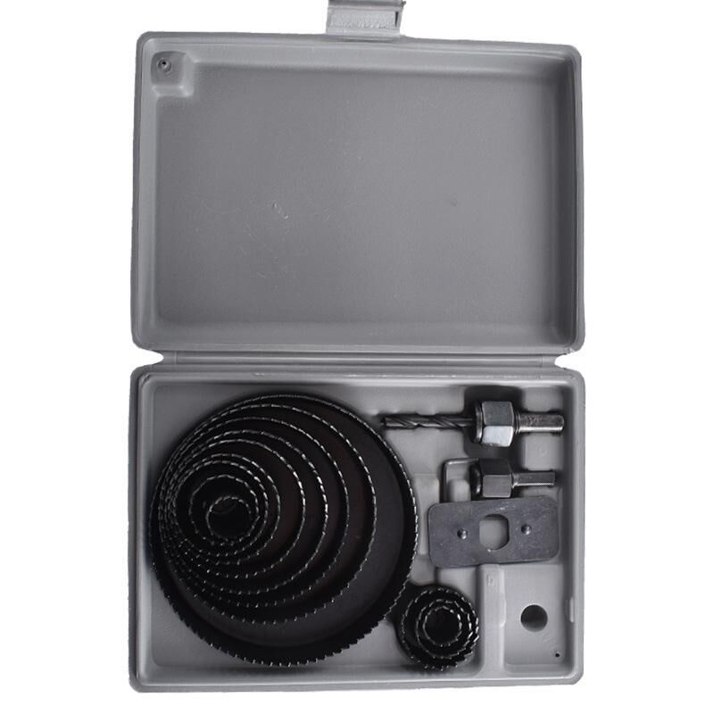 - Hole saw x12: about 19/28/38/22/32/44/51/64/76/89/102/127mm in diameter