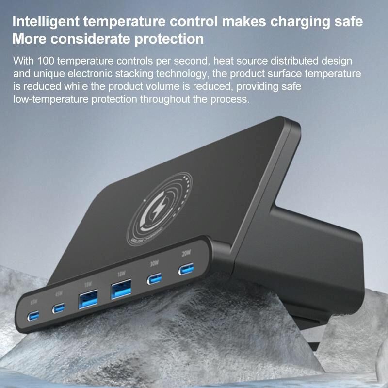 3. Περιλαμβάνει 2 x διεπαφές US QC3.0, 4 x διεπαφές PD Type-C και μια περιοχή ασύρματης φόρτισης προτύπου QI