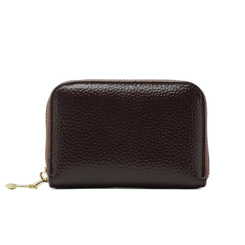 1626 Short RFID Anti-Theft Brush Multiple Card-Binding Card Package Ladies Cowhide Zipper Wallet(Brown)