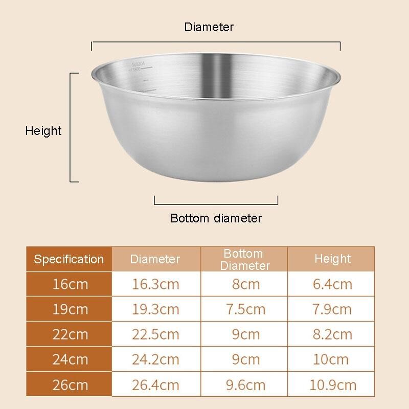 16cm 304 από ανοξείδωτο χάλυβα λεκάνη μαγειρέματος με κλίμακα πάχυνσης λεκάνη ανάμειξης λεκάνη σαλάτας