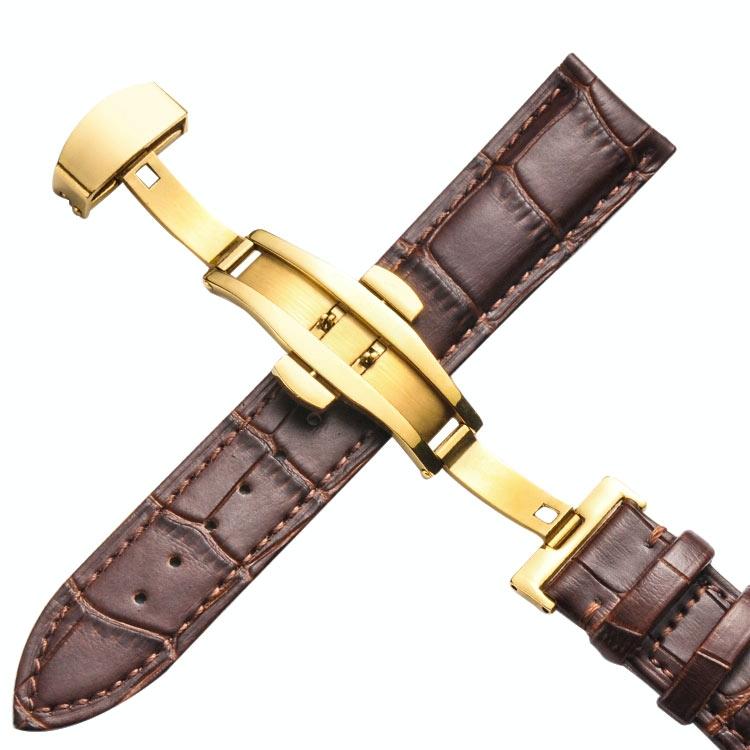 Λουρί ρολογιού από δέρμα αγελάδας 16mm, κλασικό, μαύρο με αγκράφα πεταλούδας (Μαύρες Λευκές Γραμμές)