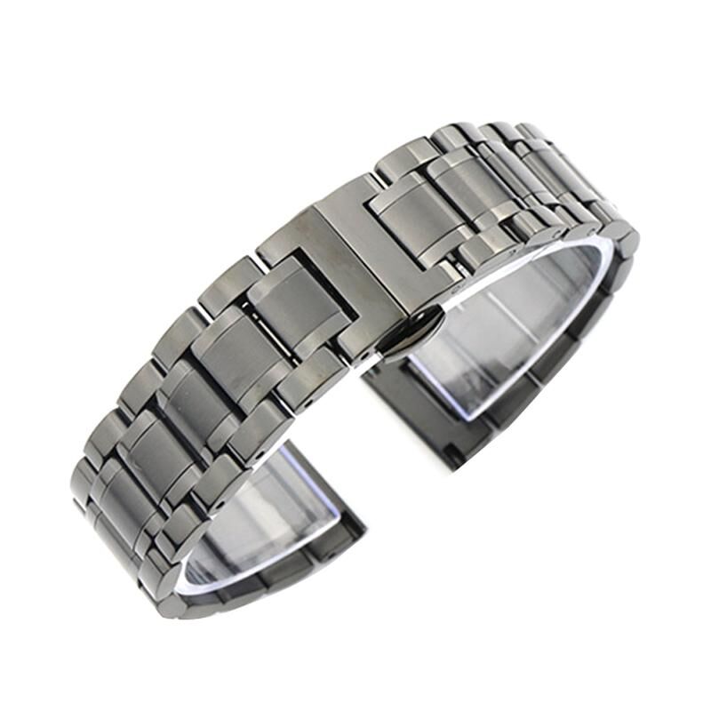 Βραχιόλι από ατσάλι 16mm με κούμπωμα πεταλούδας, πέντε χάντρες, unisex, από ανοξείδωτο ατσάλι, συμπαγής λουρί ρολογιού, Χρώμα: Μαύρο