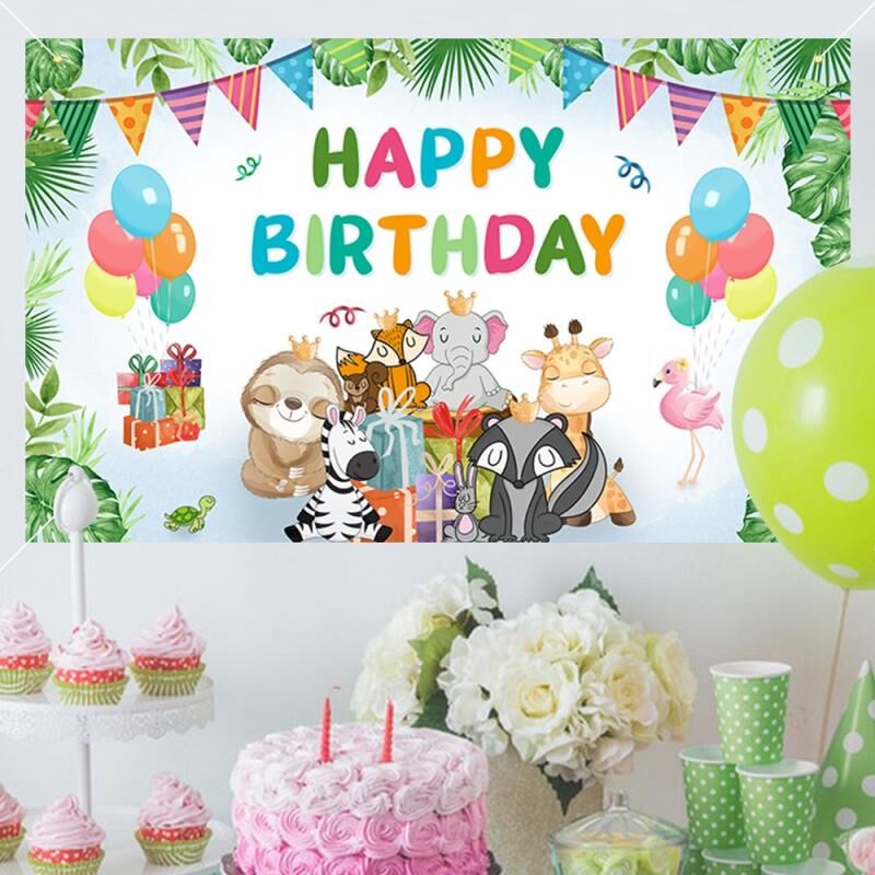 Πανί Φόντου με θέμα Ζώα για Γενέθλια, 180x110εκ., Διακόσμηση Παραμυθιού (2023SRB92)