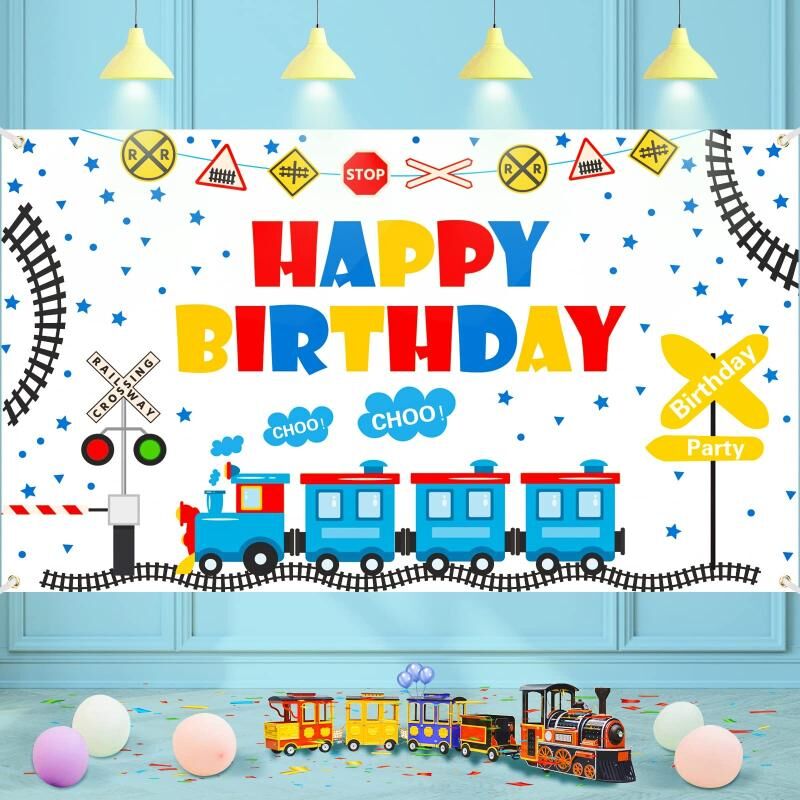 Πανί Φόντου Γενεθλίων Παιδιών με Σχέδια Τρένων 180x110εκ. Διακόσμηση Faber