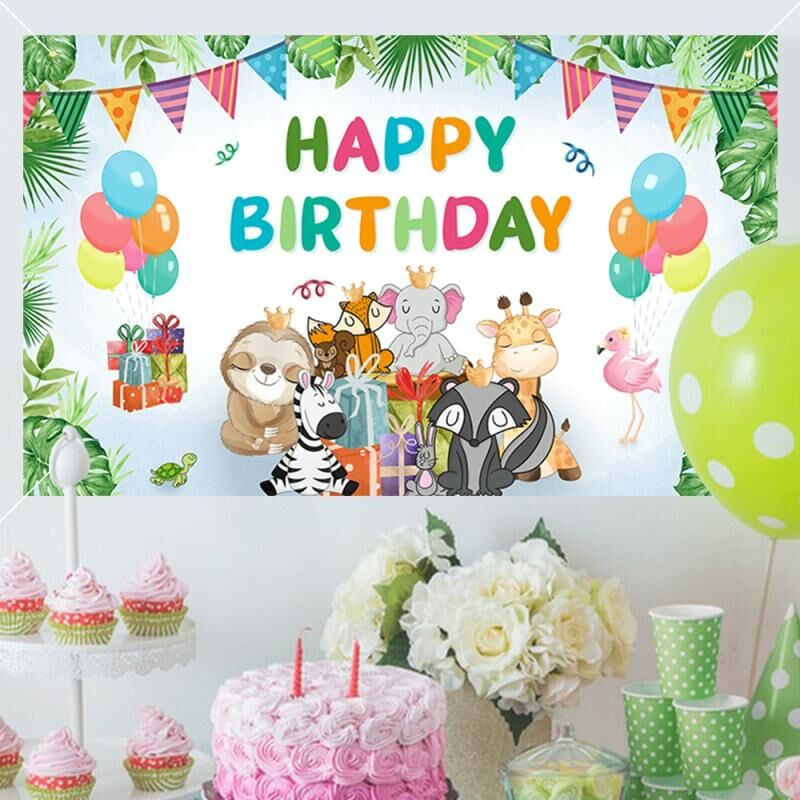 Πανί Φόντου με θέμα Ζώα για Γενέθλια, 180x90εκ., Διακόσμηση Παραμυθιού (2023SRB92)