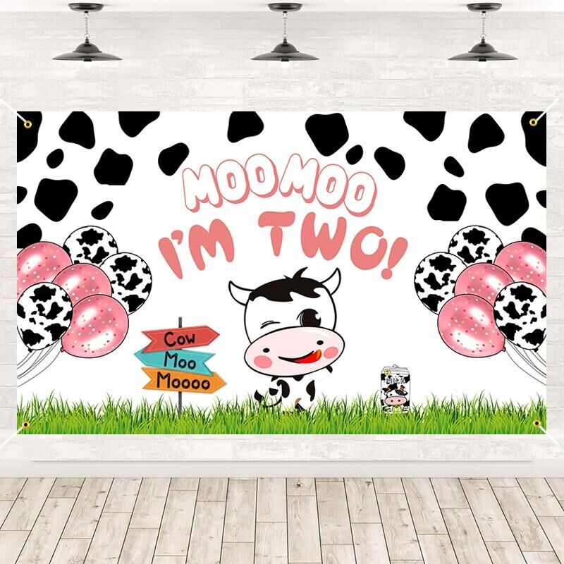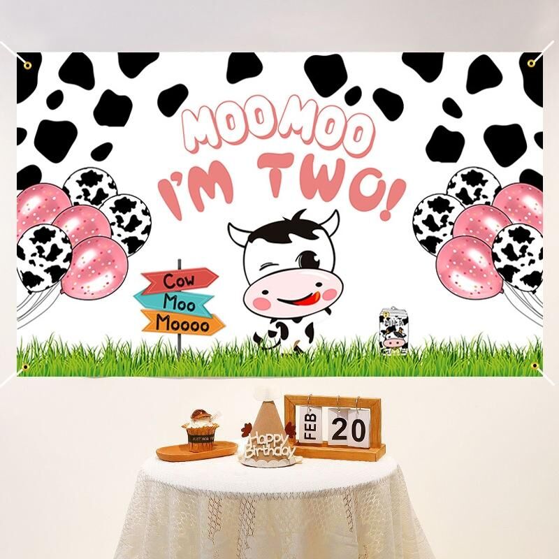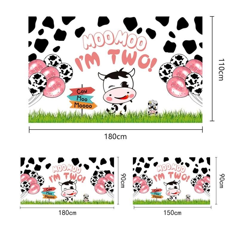 180x90cm Cartoon Cow Theme Birthday Party Decoration Background Cloth Photography Banner(2023SRB132)