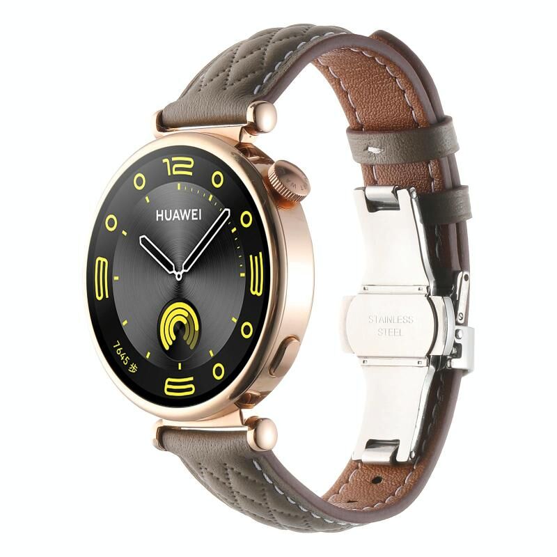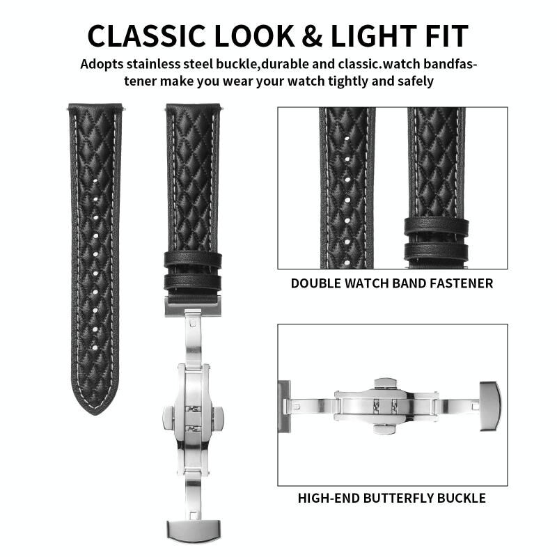 18mm Diamond Pattern Butterfly Buckle Genuine Leather Watch Band(Dark Gray)