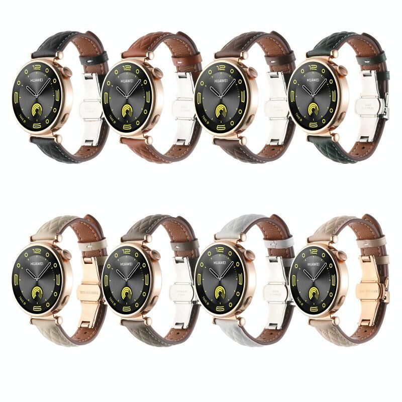 18mm Diamond Pattern Butterfly Buckle Genuine Leather Watch Band(Starlight)