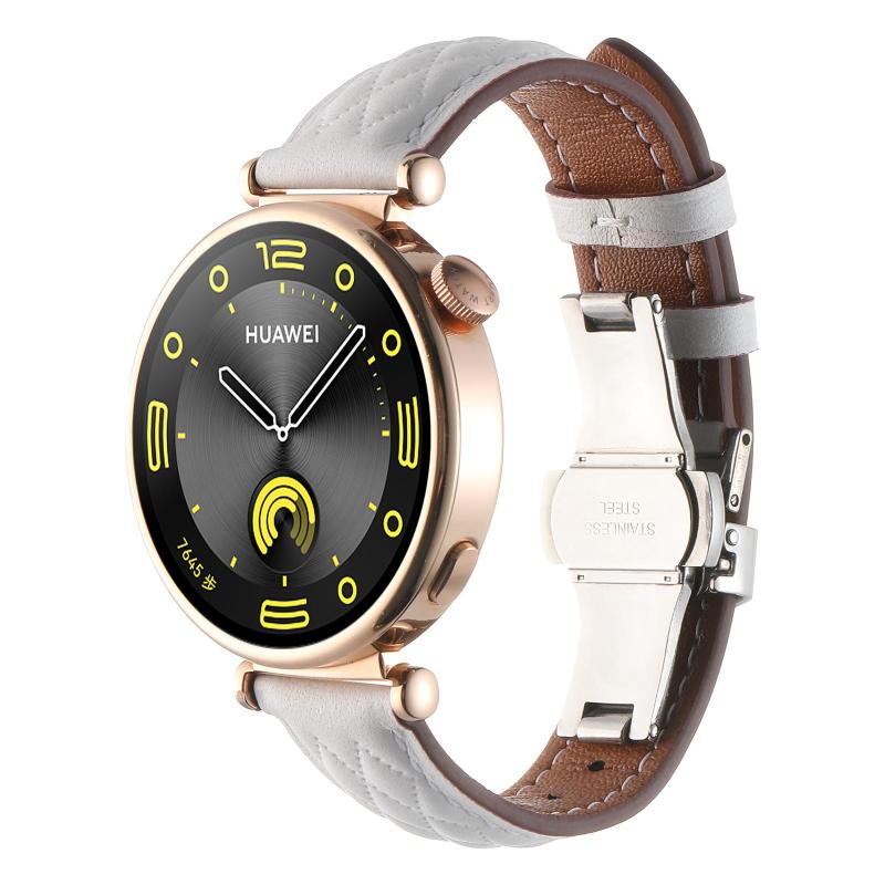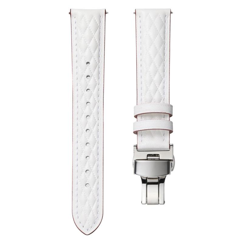 18mm Diamond Pattern Butterfly Buckle Genuine Leather Watch Band(White)