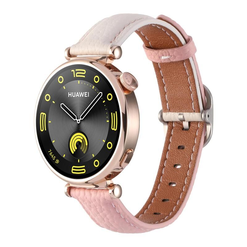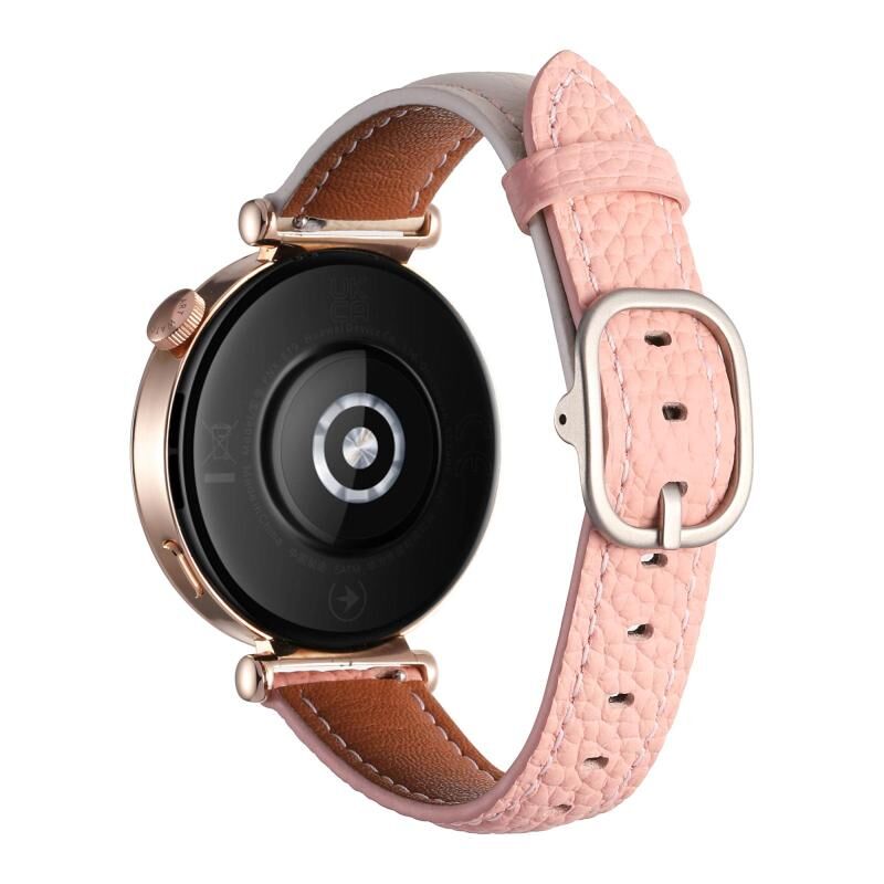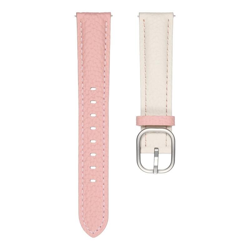 18mm Litchi Texture Square Buckle Genuine Leather Watch Band(White+Pink)
