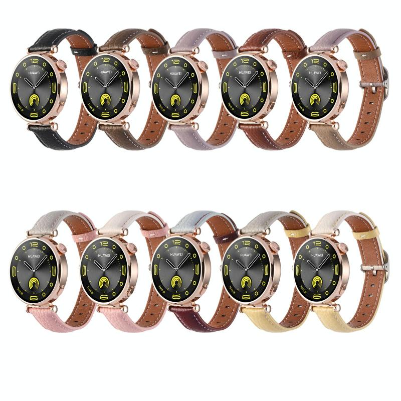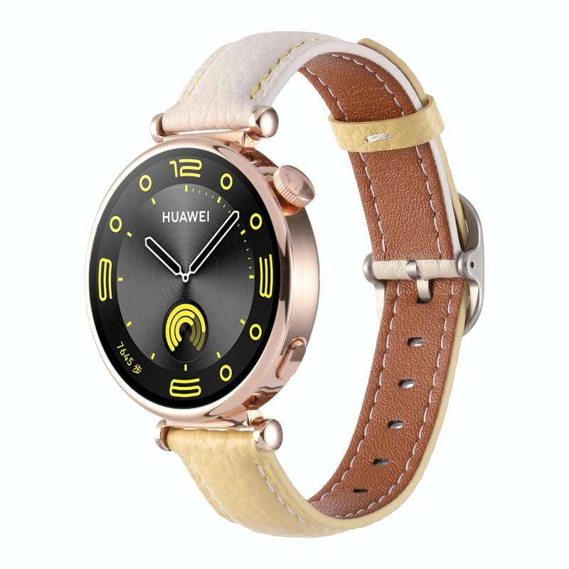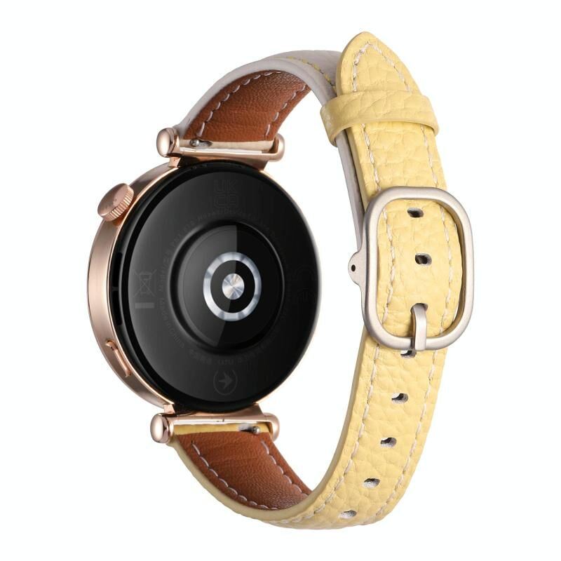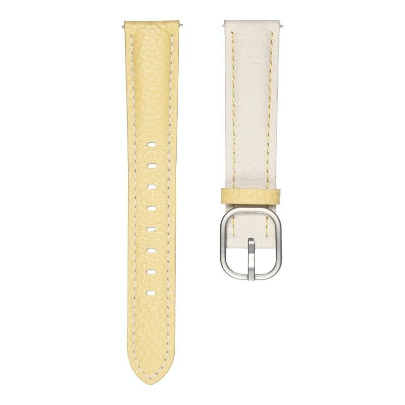 18mm Litchi Texture Square Buckle Genuine Leather Watch Band(White+Yellow)