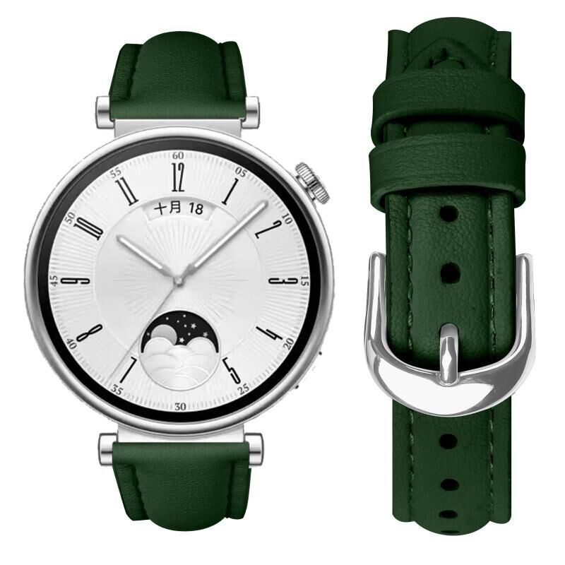 18mm Slim Genuine Leather Watch Band(Pine Green)