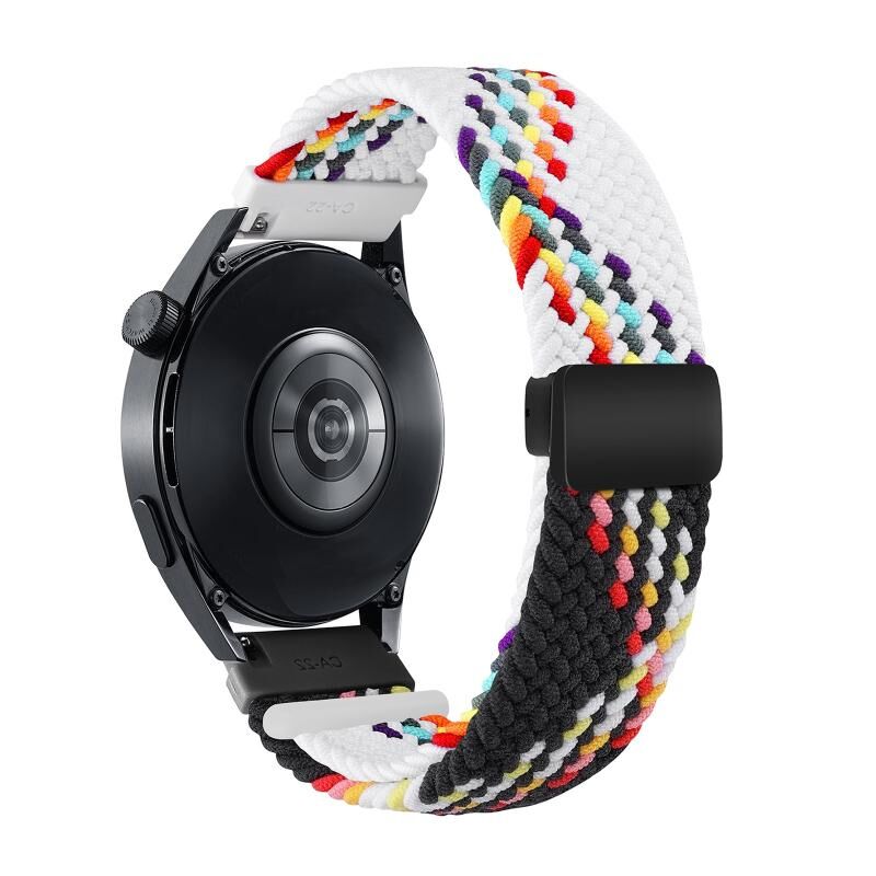 18mm Two-color Magnetic Braided Nylon Watch Band(White Black Rainbow)
