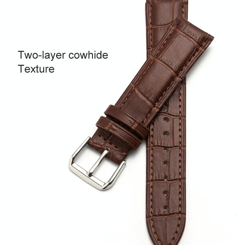Λουρί ρολογιού από δέρμα αγελάδας διπλής στρώσης 18mm με υφή συνδέσμου μπαμπού (Σκούρο καφέ)