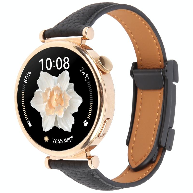 18mm Universal Slim Magnetic Buckle Genuine Leather Watch Band(Black)