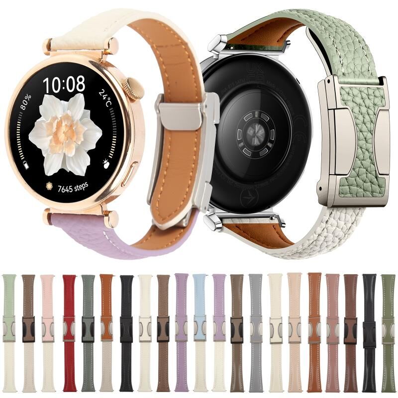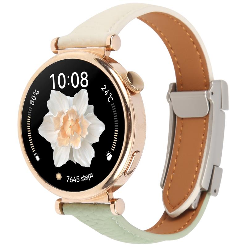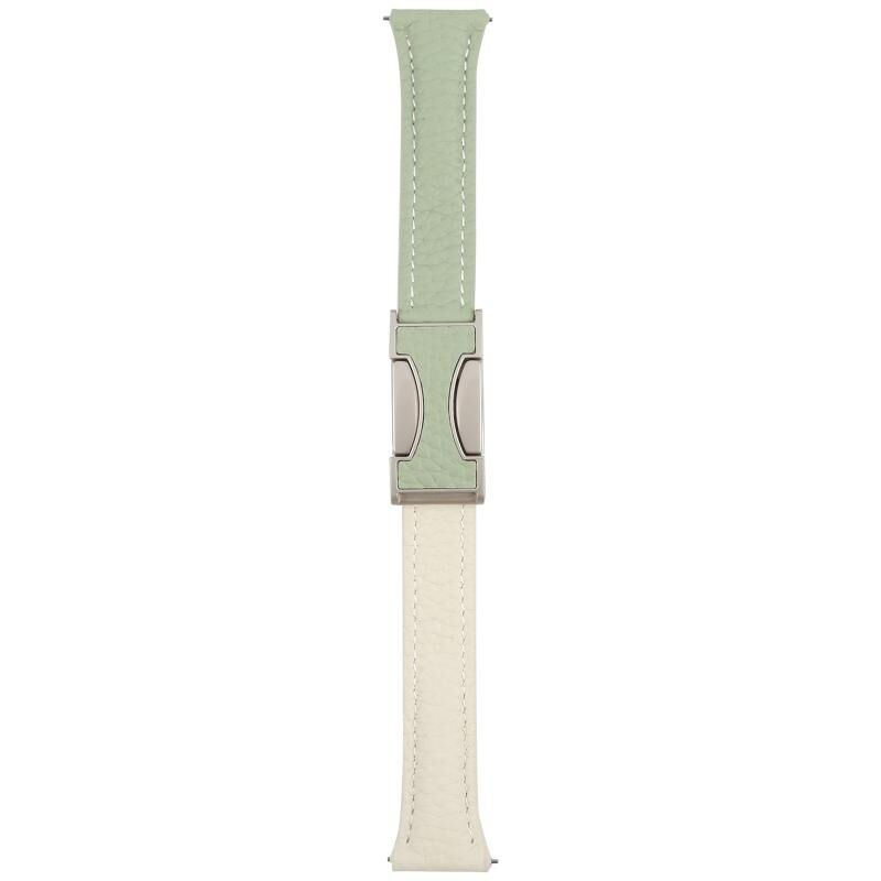 18mm Universal Slim Magnetic Buckle Genuine Leather Watch Band(Green Beige)