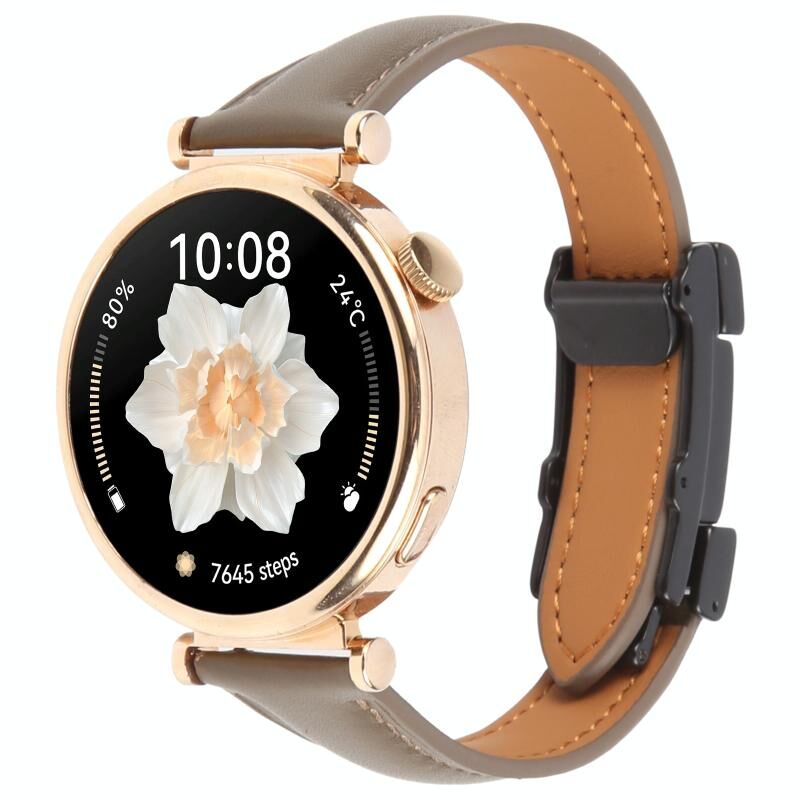 18mm Universal Slim Magnetic Buckle Genuine Leather Watch Band(Plain Weave Dark Grey)