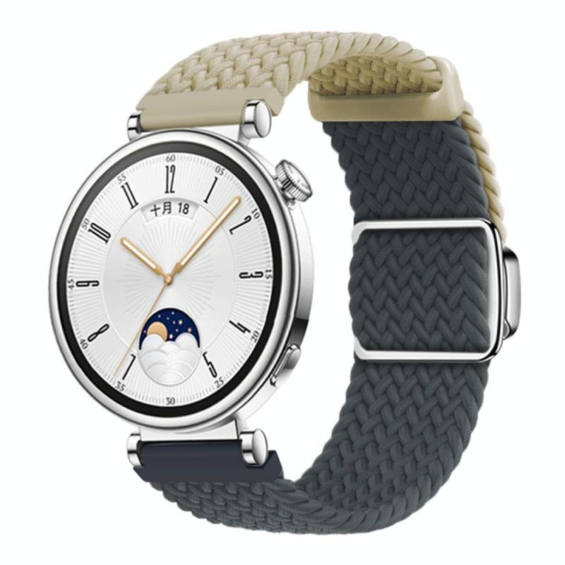 Λουράκι Ρολογιού 18mm με Πλεκτό Σχέδιο & Μαγνητικό Κούμπωμα Ασημί (Μπεζ Βαθύ Μπλε)