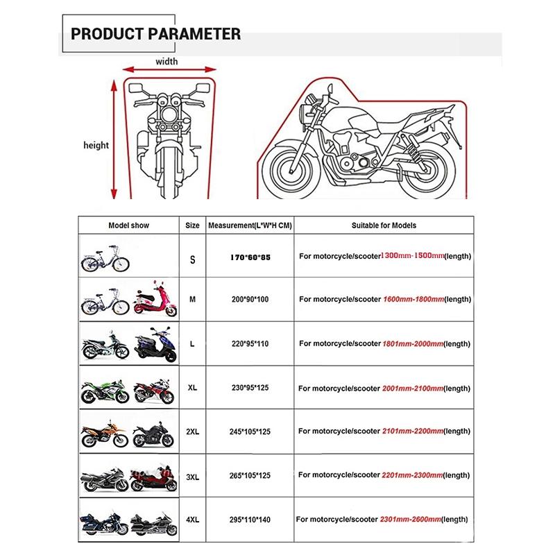 190T-XXXXL(4XL)(0.54kg) 295X110X140cm/suitable for 400CC-1000CC motorcycles (the largest model)