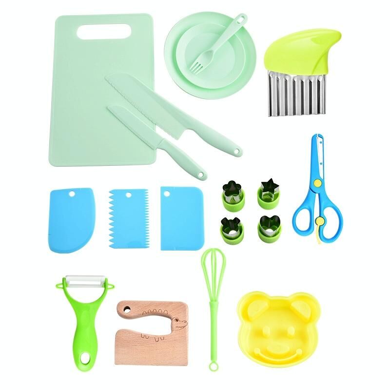 6. This childrens cooking set can help your children safely cut soft items such as vegetables, fruits, cakes, cheese, etc.