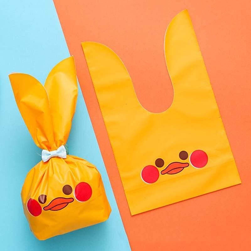 1τμχ Σακούλες συσκευασίας δώρου με σχέδια καρτούν αυτιών κουνελιού, σακούλες για καραμέλες, ψητά, μπισκότα χιονονιφάδας, Μέγεθος: 10x17cm (Μικρή Κίτρινη Πάπια)
