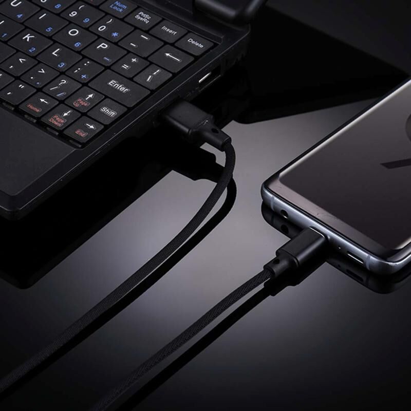 Καλώδιο Φόρτισης/Συγχρονισμού Δεδομένων USB σε USB-C / Type-C, 1m, 2A, με ύφανση από νάιλον (Μαύρο)