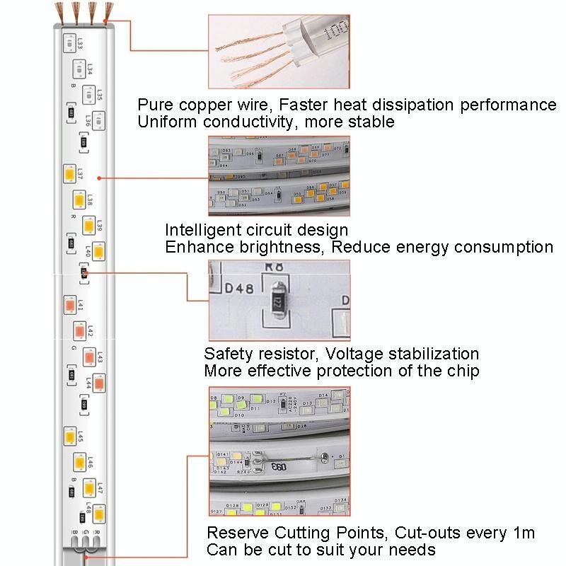 4. Υψηλή απόδοση χρώματος και χαμηλή εξασθένιση φωτός, μαλακή και εύκαμπτη λωρίδα, μονωμένη και αδιάβροχη.