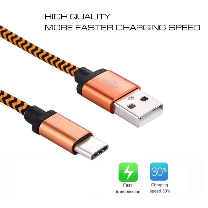 Καλώδιο Δεδομένων & Φόρτισης USB-C / Type-C 3.1 σε USB 2.0 με Υφαντή Εμφάνιση (Πορτοκαλί) - 1μ