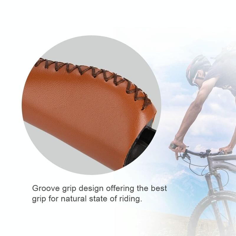 1 ζεύγος ποδηλάτων Αντιολισθητικές δερμάτινες χειρολαβές τιμονιού Mountain Bike Vintage τιμόνι προστάτης (καφέ)