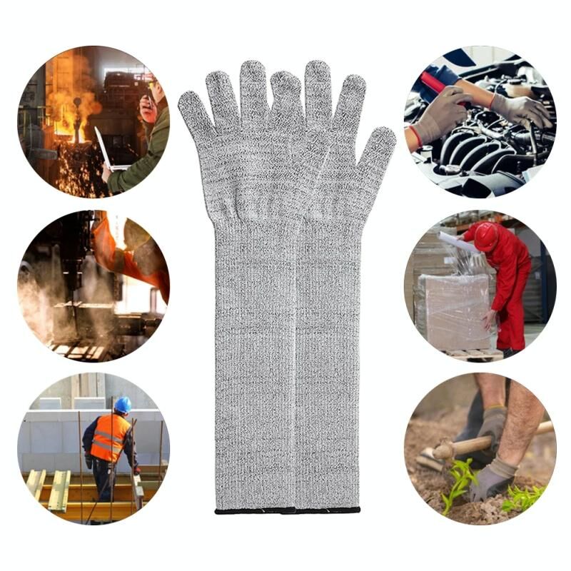 1 ζεύγος παρατεταμένων γαντιών μανικιών κατά του κοψίματος HPPE Anti-Scratch Arm Guard Anti-Bite Γάντια Εργασίας, Μήκος: 45cm Γκρι