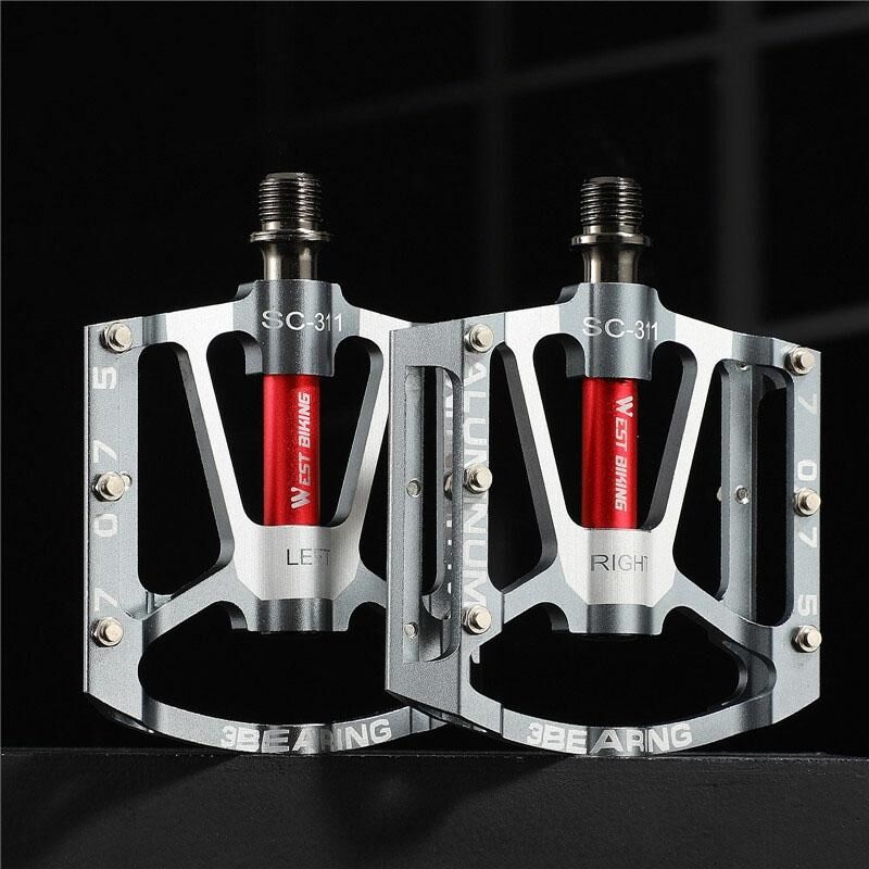 1pair WEST BIKING YP0802083 Mountain Bike Aluminum Alloy Pedal Lightweight Bearing Foot Pedal(Silver) (WEST BIKING)