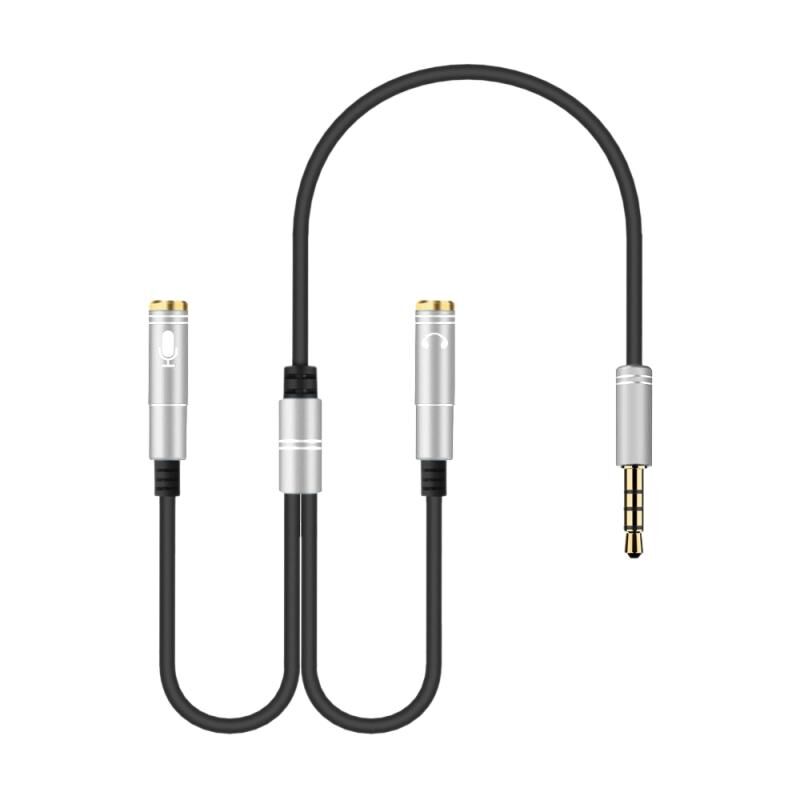 Καλώδιο ήχου διαχωριστή 2 σε 1, ανδρικό 3,5mm σε διπλό θηλυκό 3,5mm TPE υψηλής ελαστικότητας, Μήκος καλωδίου: 32cm (Μαύρο)