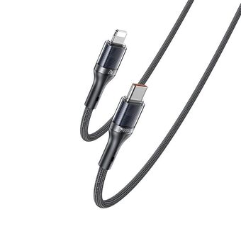 USAMS Type-C To 8 Pin Aluminum Alloy Clear LED 30W PD Fast Charge Data Cable, Length:1.2m(Black) (USAMS)