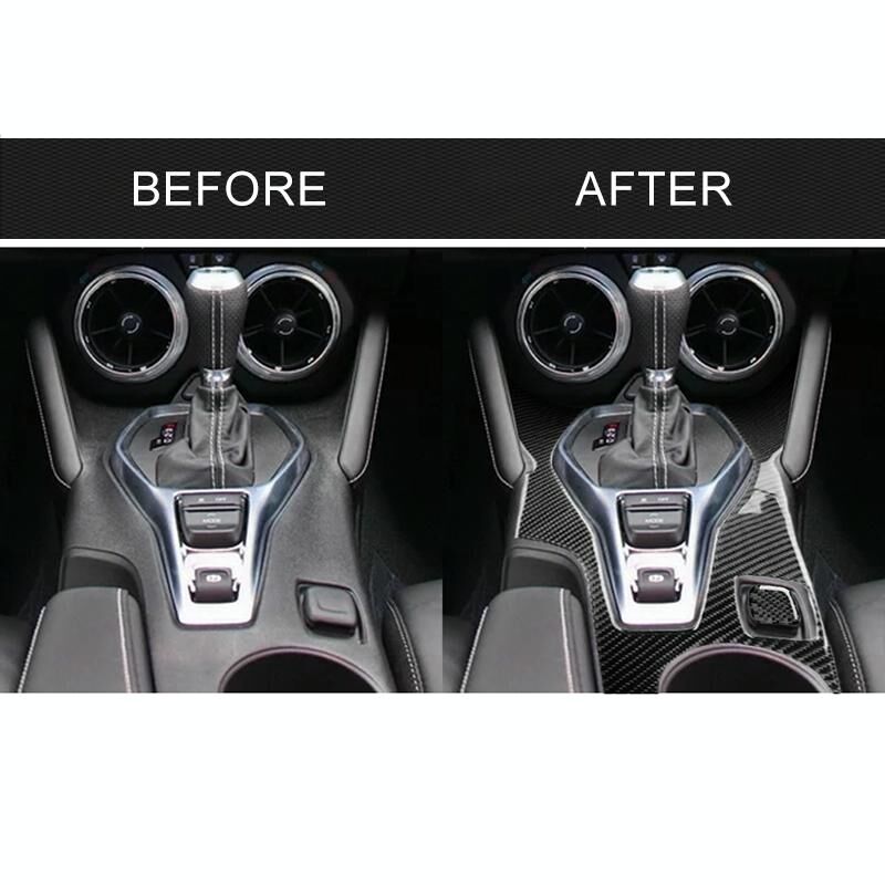 2 in 1 Car Carbon Fiber Central Control Gear Outer Frame Decorative Sticker for Chevrolet Camaro 2017-2019