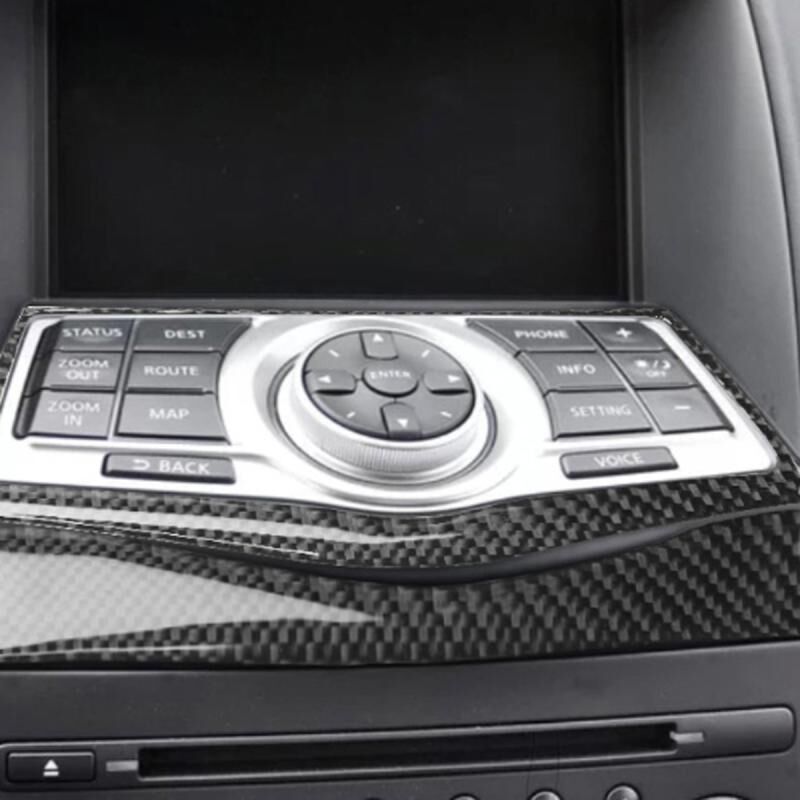 2 in 1 Car Carbon Fiber Multimedia Navigation Buttons Frame Decorative Sticker for Nissan 370Z Z34 2009-, Left and Right Drive Universal