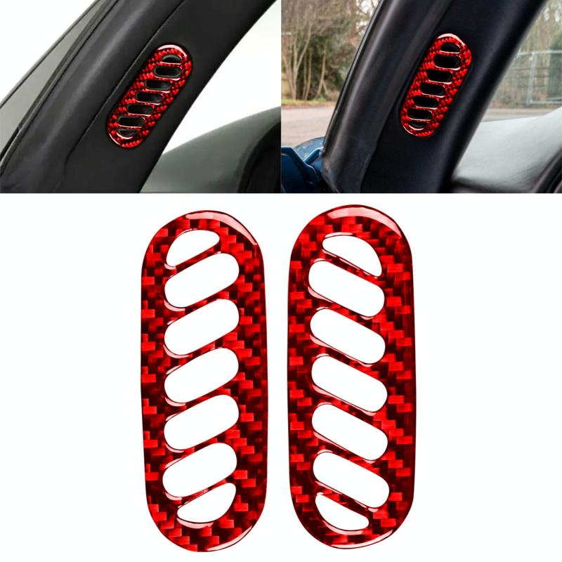 2 in 1 Car Carbon Fiber Sides Door A-pillar Air Outlet Sticker for Chevrolet Corvette C5 1998-2004, Left Drive(Red)