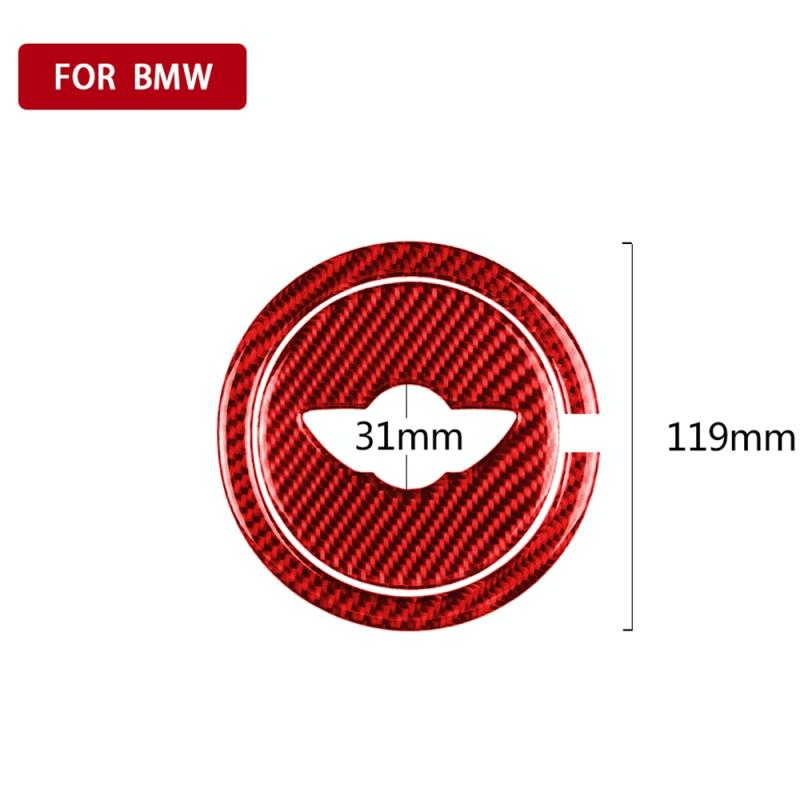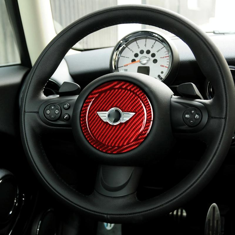 2 in 1 Car Carbon Fiber Steering Wheel Decorative Sticker for BMW Mini R55 R56 Countryman R60 Paceman R61 2007-2013, Left and Right Drive Universal(Red)