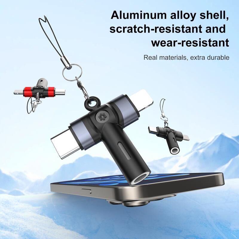 2 in 1 Flower Pattern Type-C and 8 Pin to 3.5mm Audio Adapter with Lanyard(Grey Black)