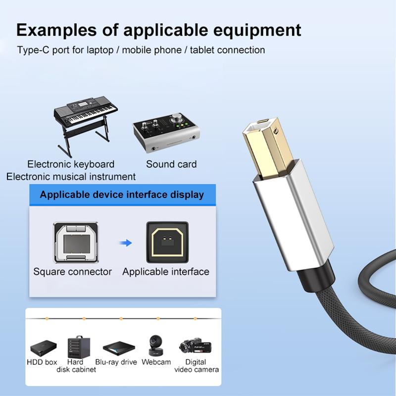 2. USB-C/USB-A: Ο σχεδιασμός του καλωδίου εκτύπωσης 2-σε-1 μπορεί να συνδέσει 2 διαφορετικούς τύπους ψηφιακού εξοπλισμού, σε αντίθεση με την συνηθισμένη γραμμή δεδομένων εκτυπωτή ένας-προς-έναν, πιο βολική εφαρμογή, δεν χρειάζεται πλέον να ανησυχείτε για κάθε συσκευή με ένα καλώδιο εκτύπωσης.