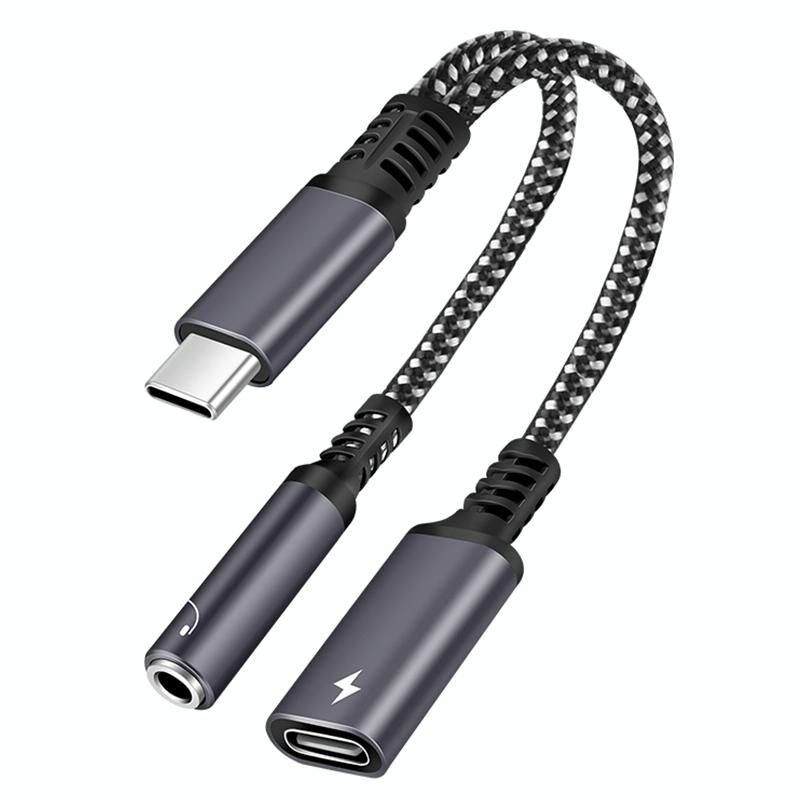 2 σε 1 USB-C / Type-C αρσενικό σε PD 60W USB-C / Type-C φόρτιση + 3,5 χιλιοστά ήχου θηλυκό ακουστικό προσαρμογέα (γκρι)