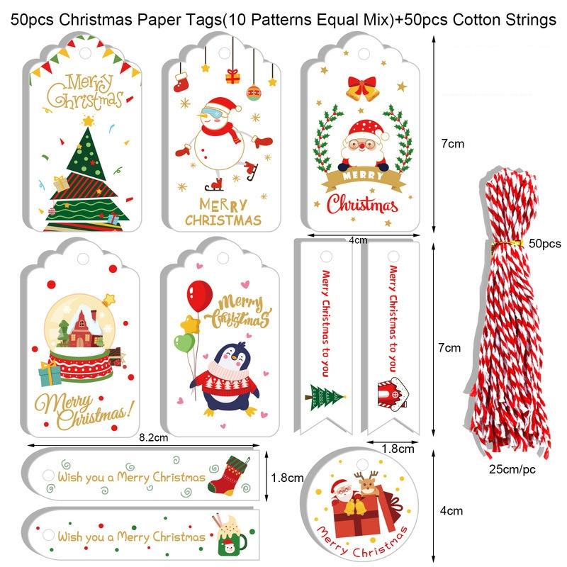 2 Packs 50pcs/set Christmas Kraft Paper Tags Gift Wrapping Paper Labels(Series 3)