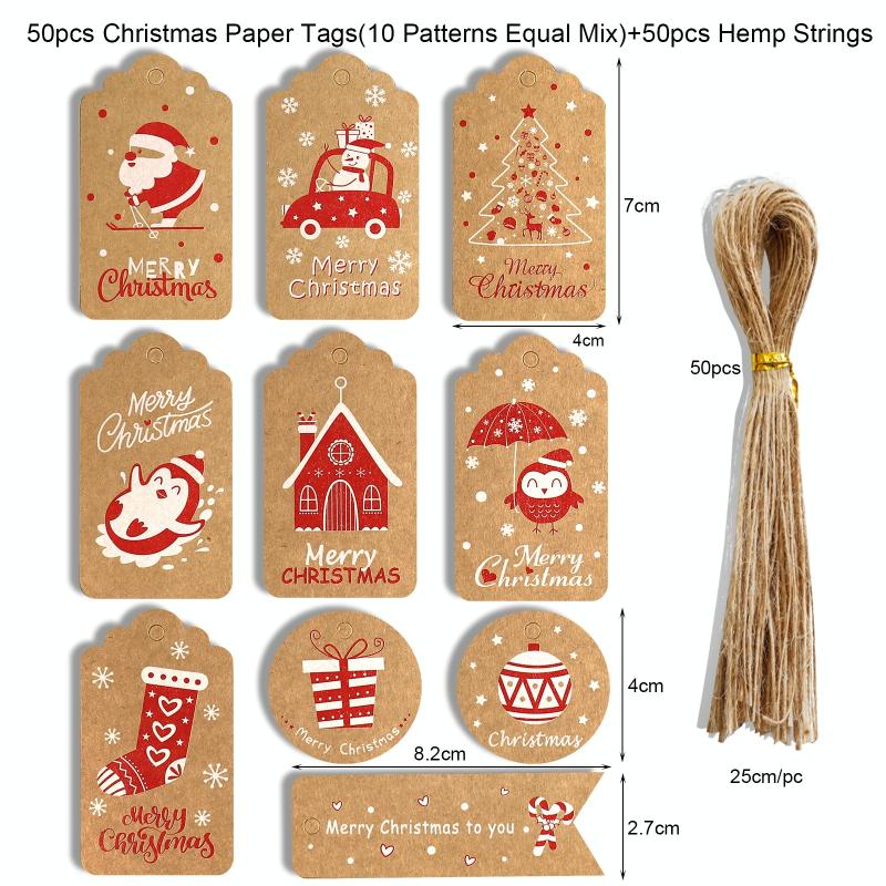 2 Packs 50pcs/set Christmas Kraft Paper Tags Gift Wrapping Paper Labels(Series 8)