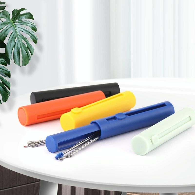 2 Packs Push-Pull Cylinder Storage Ear Scoop Set, Specification: 6 PCS/Set Green