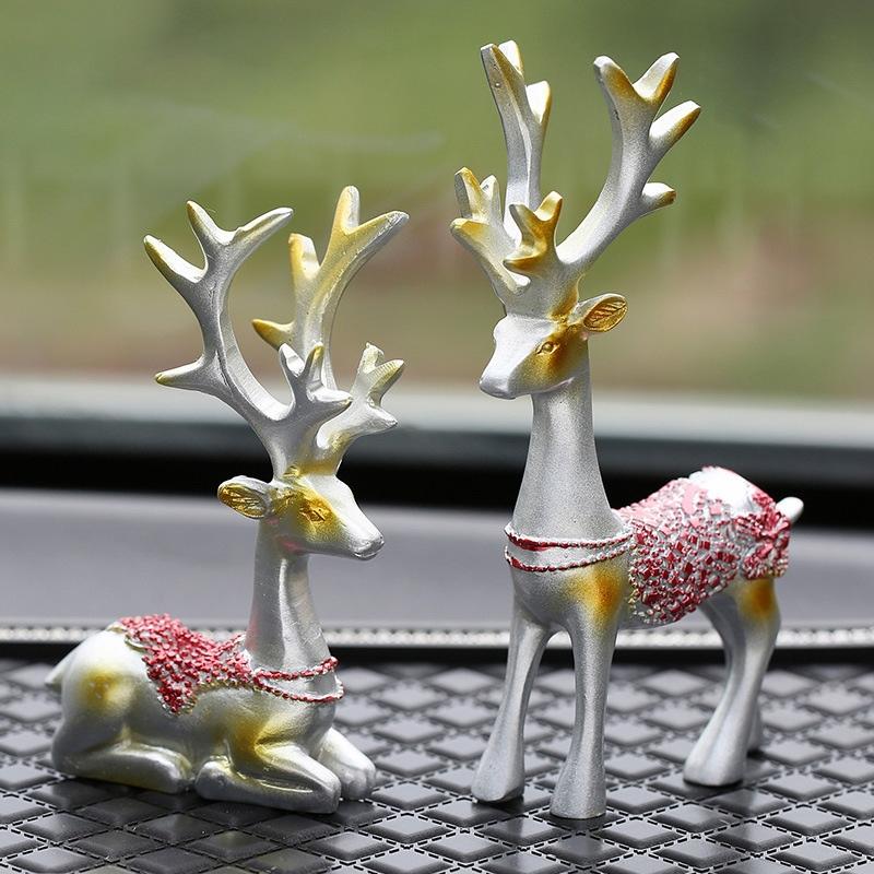 2 Pairs R-8820 Car Ornaments Car Home Safe Deer Decorations(Silver)