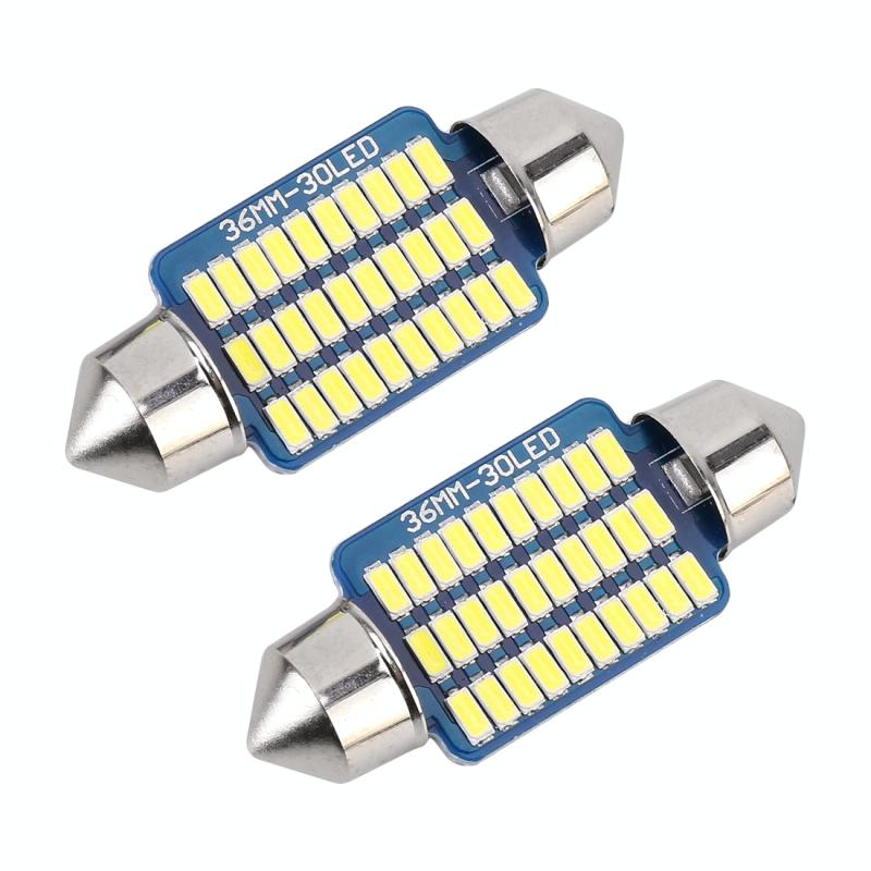2 PCS 36mm DC12V / 1.5W / 6000K / 100LM 30LEDs SMD-3014 Car License Plate Light / Dome Light, with Decoder