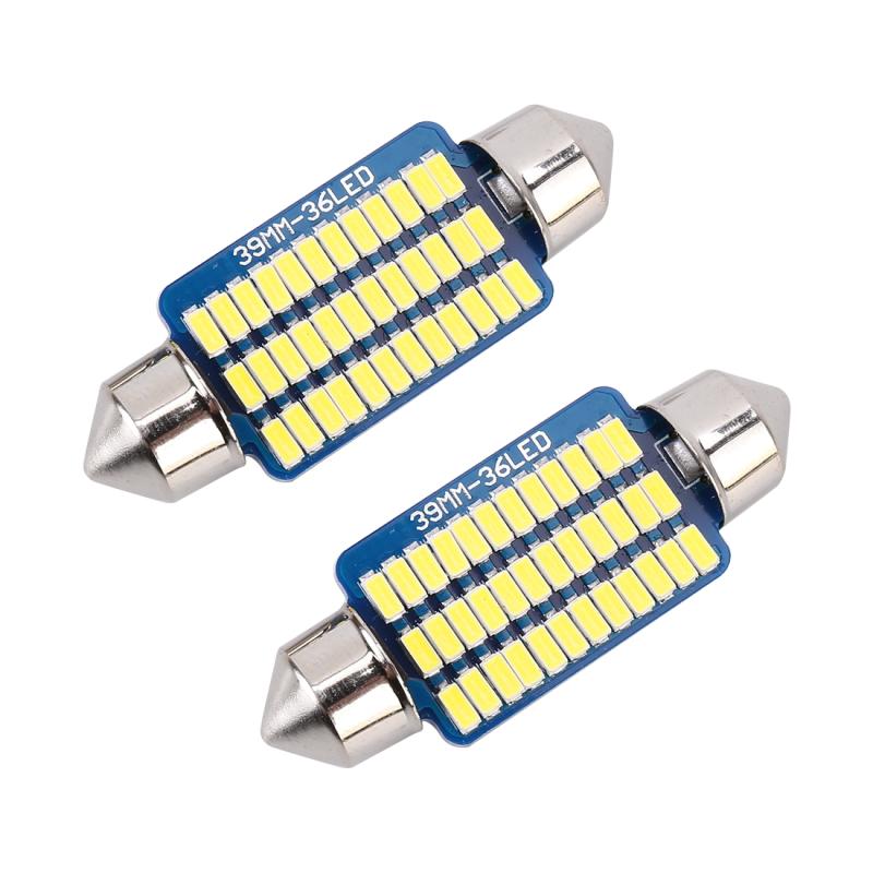 2 PCS 39mm DC12V / 1.5W / 6000K / 100LM 36LEDs SMD-3014 Car License Plate Light / Dome Light, with Decoder