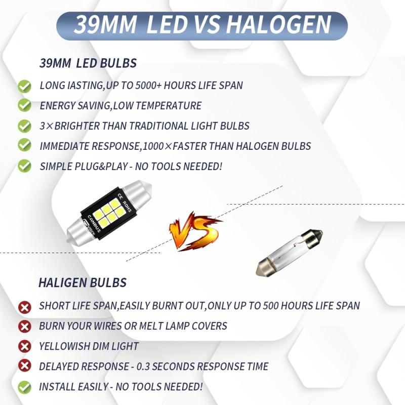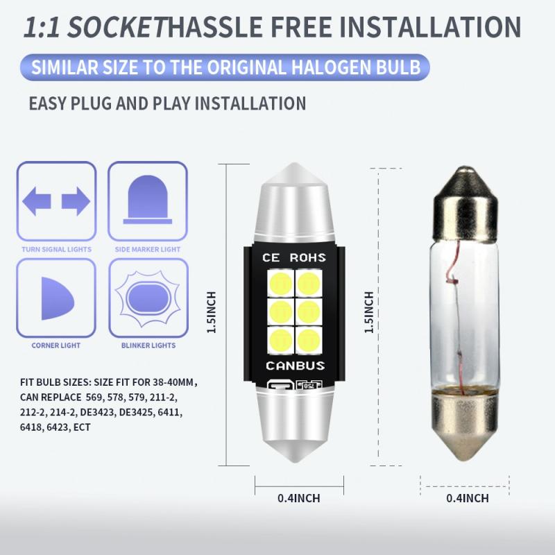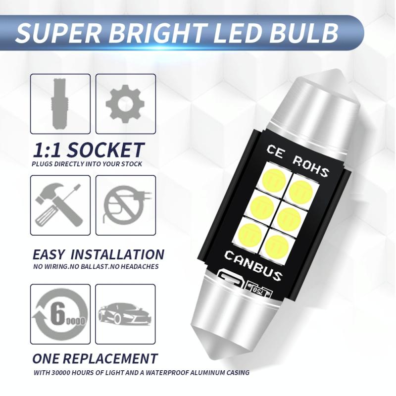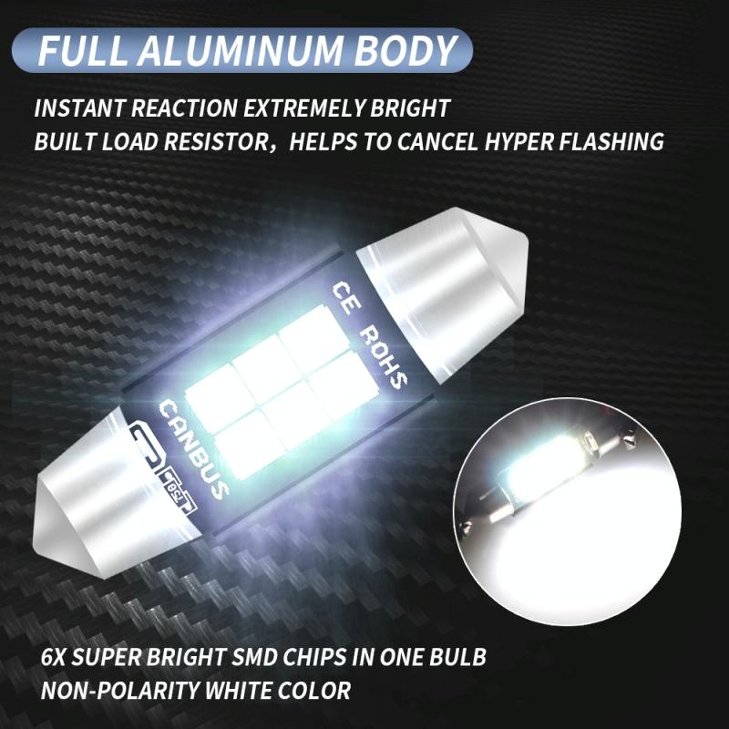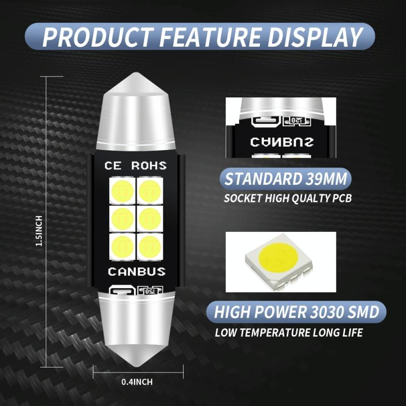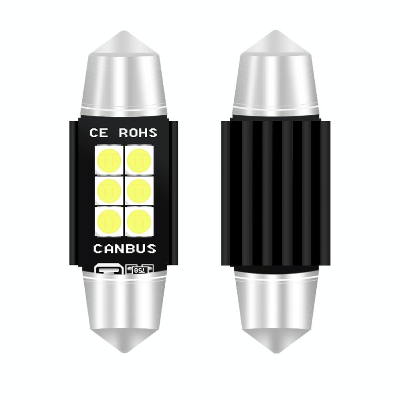 2 PCS 39mm DC12V-24V 3W 6000K 660LM 6LEDs SMD-3030 Car Reading Lamp / License Plate Light