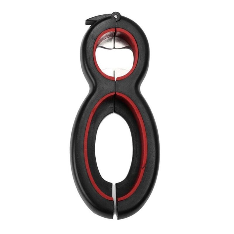 1. Το 6 σε 1 Πολυλειτουργικό Ανοιχτήρι μπορεί να ανοίξει έξι διαφορετικούς τύπους σφραγίδων/καπακιών: σακούλες, ασφάλειες, δακτύλιοι, καπάκια μπουκαλιών, καπάκια δοχείων, καπάκια βάζων