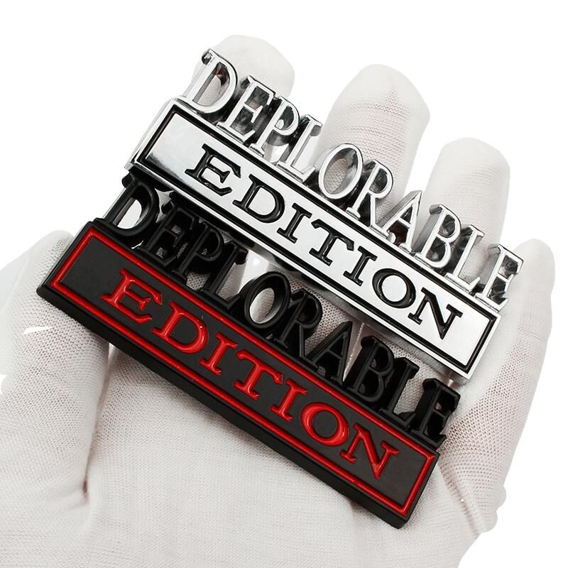 2 PCS Car Modified Metal Car Standard DEPLORABLE Edition Car Stickers(Silver Black)