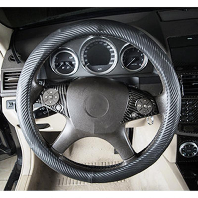 2 PCS Car Steering Wheel Button Carbon Fiber Decorative Sticker for Mercedes-Benz W204 2007-2010